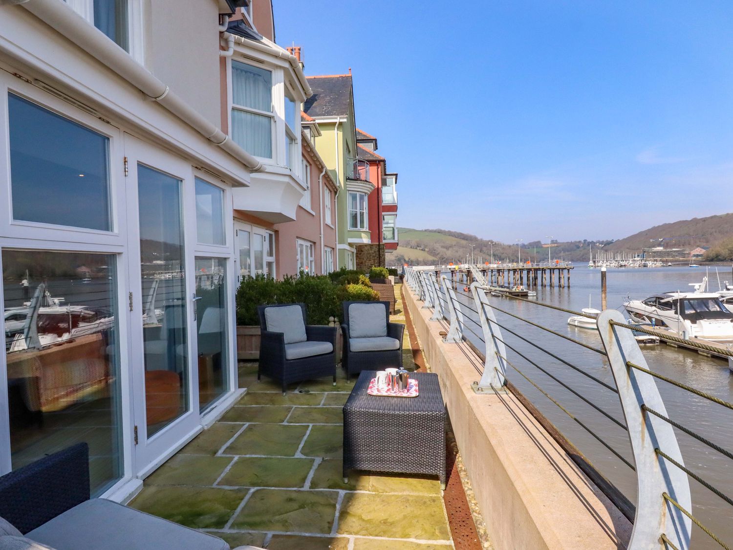 26 Dart Marina is a terraced townhouse resting in Dartmouth, Devon, offering stunning river views, three inviting bedrooms, and a bright interior set across three floors.